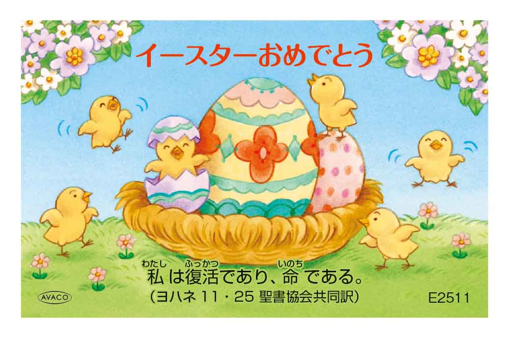 / 最終更新日 : 吉崎礼子 行事聖句カード イースターカードE2511 販売教材の種類 行事 聖句カード価格(税込) ¥ 15内容紹介 聖句/私は復活であり、命である。(ヨハネ11・25) ハガキ1/4サイズのイースターカード FacebookXBlueskyCopy