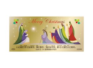 / 最終更新日 : 吉崎礼子 行事聖句カード クリスマスカードX2505 販売教材の種類 行事 聖句カード価格(税込) ¥ 40内容紹介 聖句/いと高き所には栄光、神にあれ/地には平和、御心に適う人にあれ。(マタイ2・14) ハガキサイズのクリスマスカード FacebookXBlueskyCopy